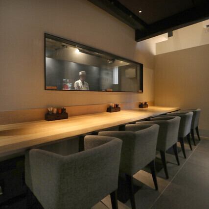 【ライブキッチンが堪能できるカウンター席】名代の一本うなぎが目の前で捌かれ、備長炭で焼き上がる姿を間近でお愉しみいただけるカウンターはまさに特等席です◎四代目菊川のうなぎを、目や耳、鼻など五感で存分にご堪能いただけます。お一人様はもちろんデートにも最適なカウンターでごゆっくりとお過ごしください。